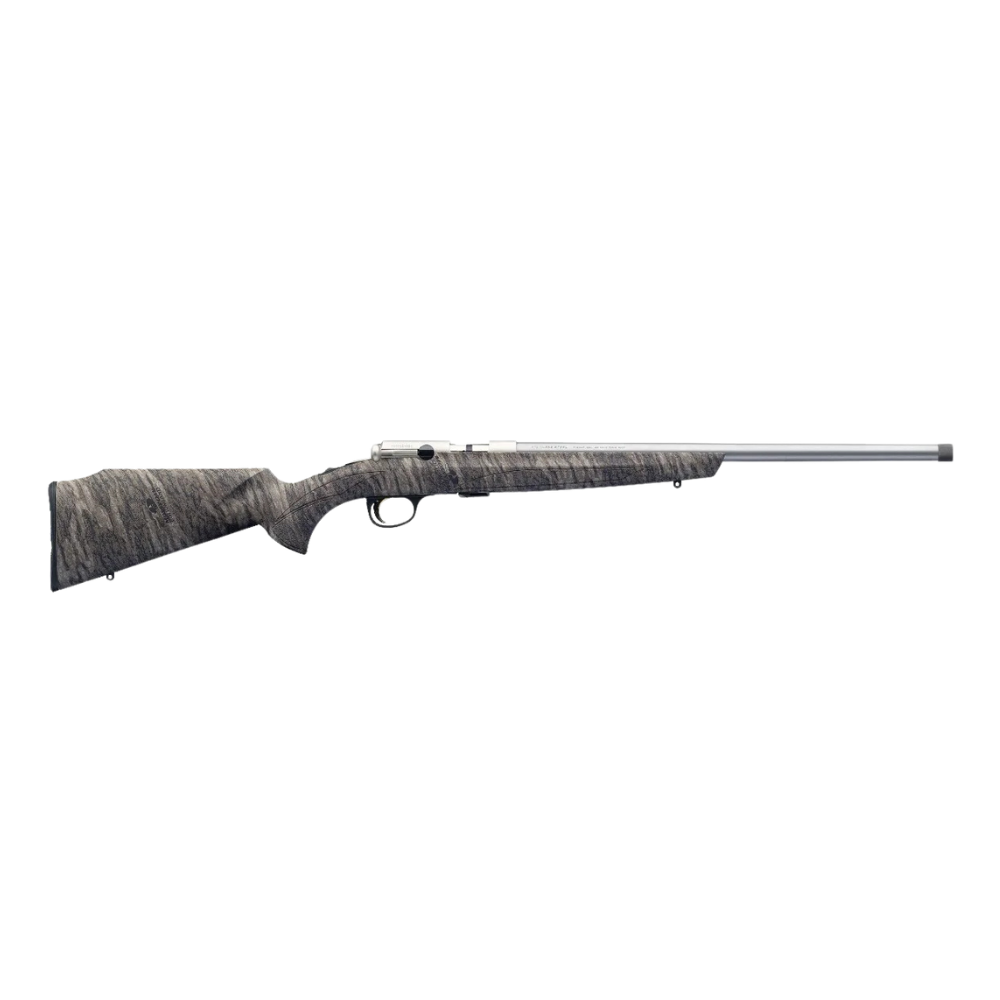 Strength and concealment in all environments. Fitted with a semi-heavy stainless barrel for accuracy and a unique composite Mossy Oak Bottomlands stock.