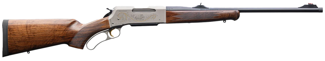 The Browning BLR Ultimate offers exceptional durability in all weather conditions, whilst the nickel‑plated aluminium receiver with detailed game‑scene engraving adds a premium, refined finish, making it essential for any Browning enthusiast.