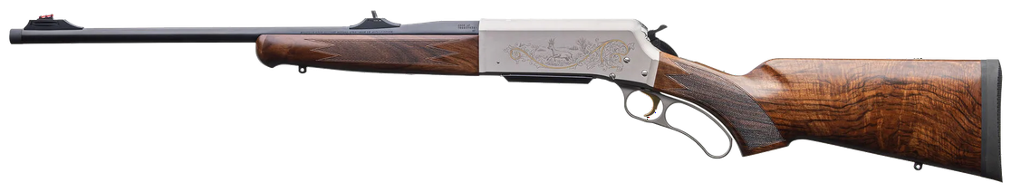 The Browning BLR Ultimate offers exceptional durability in all weather conditions, whilst the nickel‑plated aluminium receiver with detailed game‑scene engraving adds a premium, refined finish, making it essential for any Browning enthusiast.