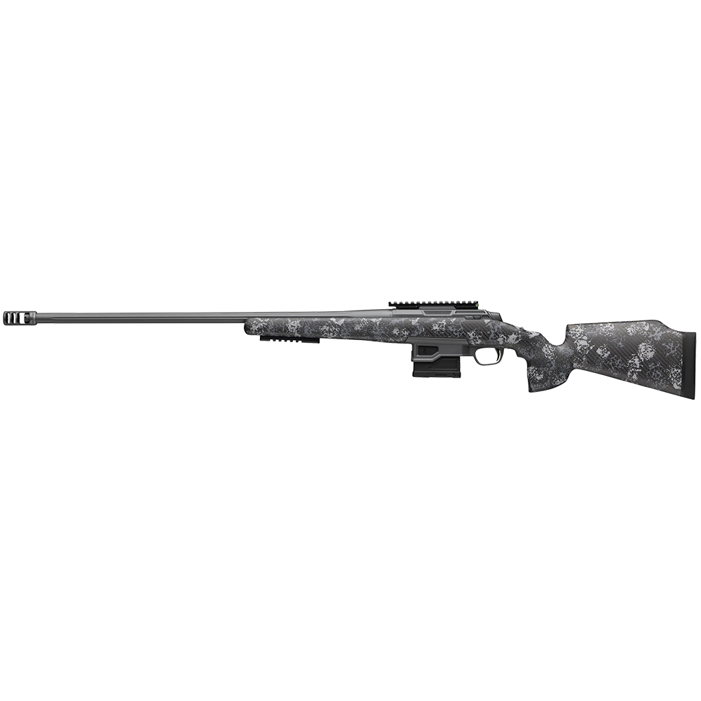 The fluted barrel is built to Browning's high-quality standards and triple checked for interior finish, straightness and air-gauged for uniformity. The chamber is hand-reamed for precision accuracy, and a recessed muzzle crown helps protect the rifling from damage. Barrels come in standard lengths and vary by caliber. The muzzle is threaded 5/8"-24, and the Browning Recoil Hawg muzzle brake and thread protector cap are included. The action is bedded, and the barrel is free floated for consistent accuracy.