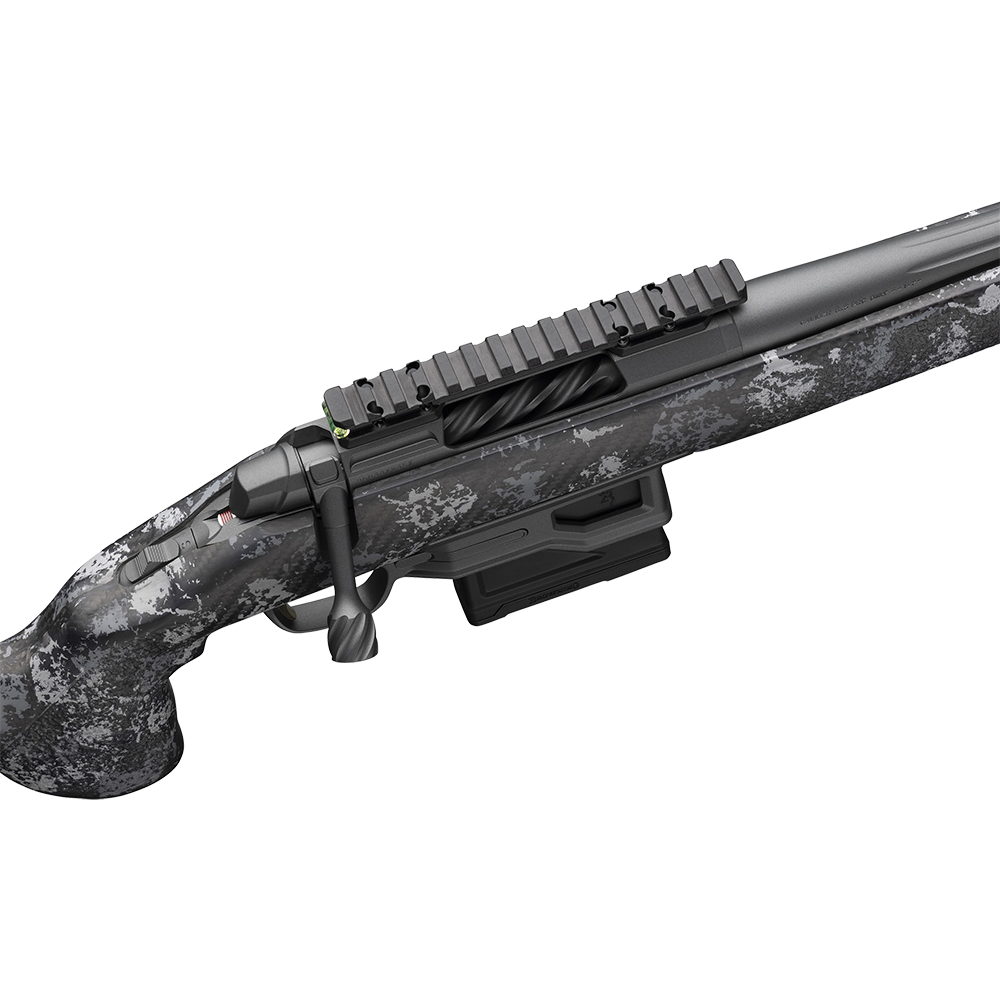 Cartridge feeding duties are handled by our own Plus Magazine System. Designed to give hunters and competitive target shooters and edge, the Plus Magazine System uses an in-house designed, extended polymer magazine to increase capacity by two rounds depending on caliber. Cartridges are fed from the center of the magazine for straight to the chamber feeding. The magazine also has shoulder retention to protect the tip of the bullet from striking the front of the magazine during recoil. A sturdy metal magazine well keeps the release button within easy reach on the right-hand side of the rifle.