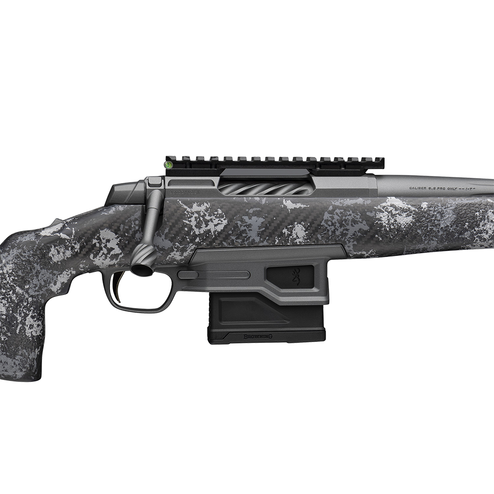 The new Pro receiver has had excess material machined away and the bolt is spiral fluted. The aluminum bolt handle is fluted and has a hollow knob. A Cerakote Carbon Gray finish is applied to the for-metal protection that exceeds that of bare stainless steel. A 20 MOA Picatinny rail with bubble level tops the receiver.