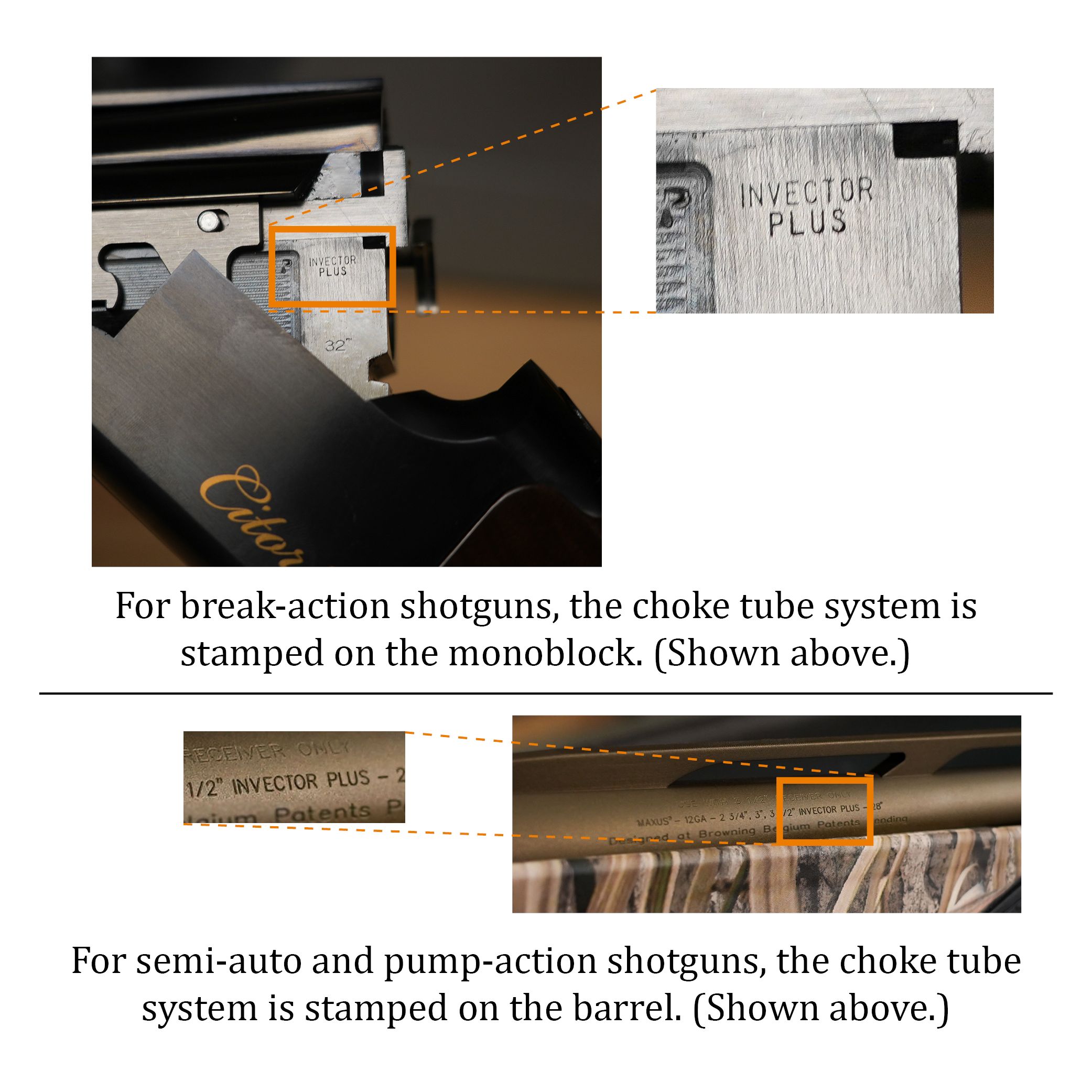 Extended length for longer tapers, better patterns and convenience. Knurled end for quick installation and removal. Choose from a full selection of 12 gauge choke constrictions. Fits Invector-Plus 12 gauge shotguns ONLY.
