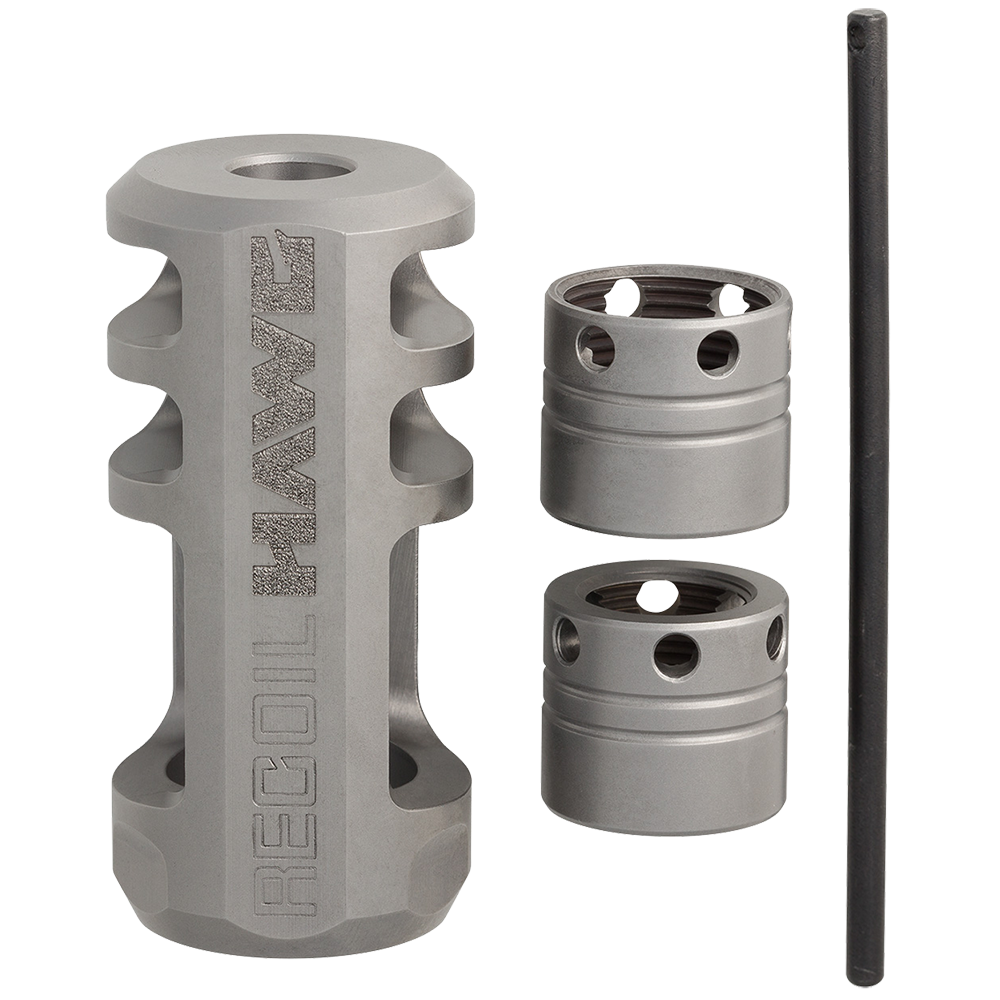 Shown to reduce recoil up to 76% (depending on the caliber). Specially designed directional porting blows gases up and to the sides to minimize dust signature. Two models are available to match the threading and contour of your rifle barrel.