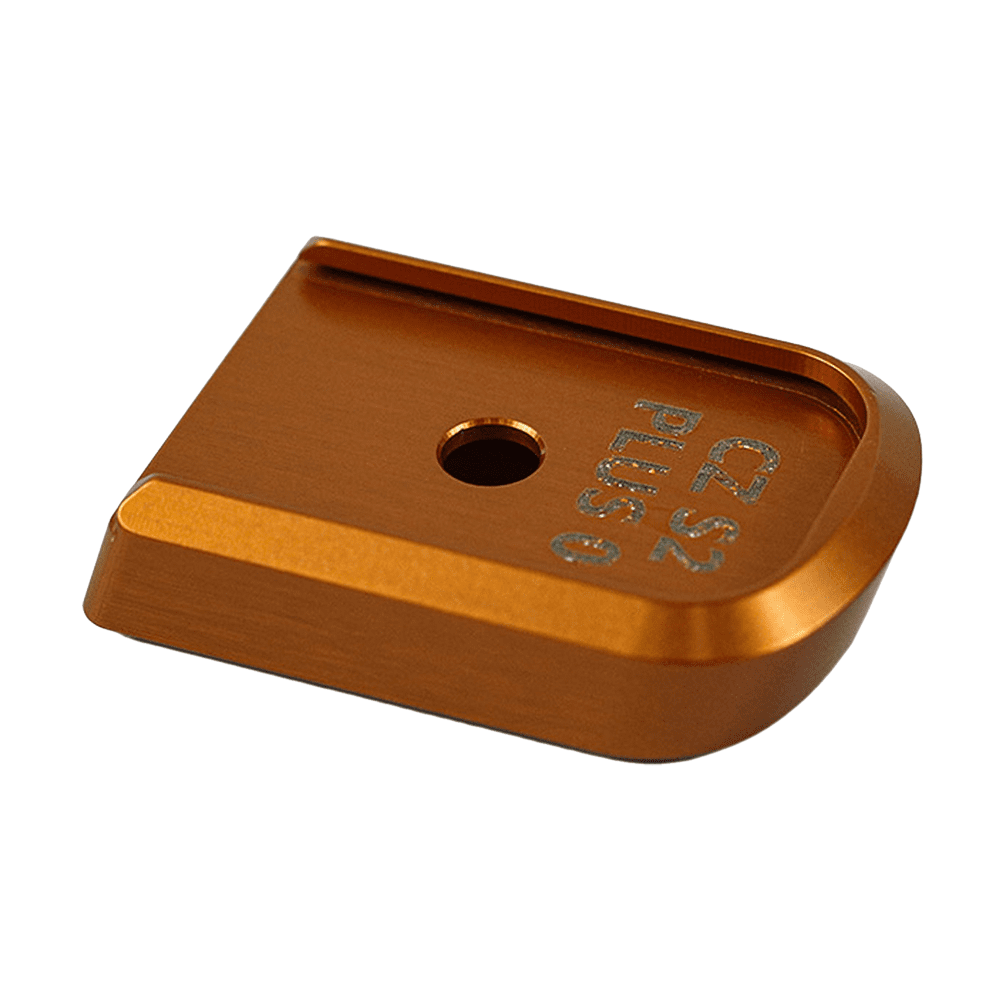 The LokGrips +0 base pad is CNC machined from solid 6061 Aluminum and anodized in a striking orange coloration. Machined so that the front edge matches the angle of the magazine, this pad is designed for a more natural grip during reloads.