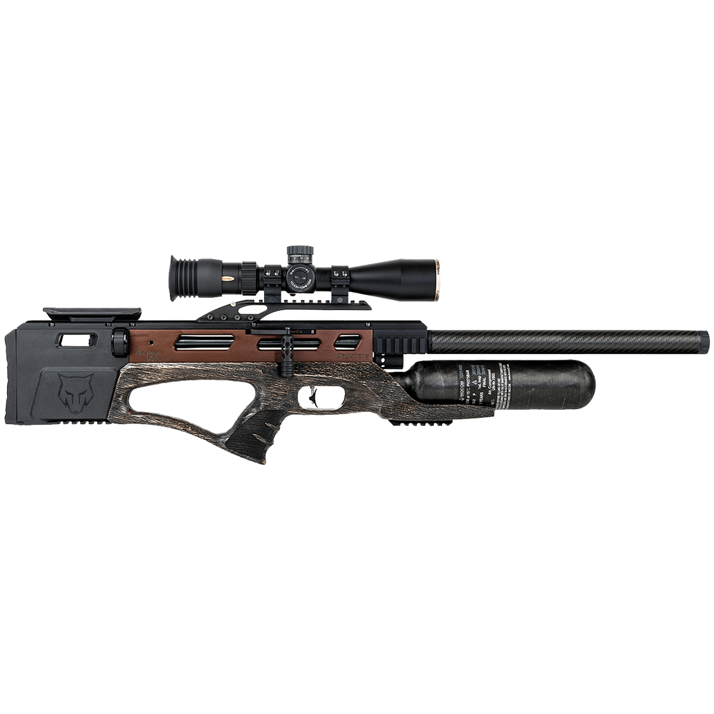 Extending the appeal of the world’s most advanced PCP air rifle to serious hunters and extreme range target shooters alike, the Safari Edition sports a high-grip, practical and ambidextrous textured wood stock, matched to an attractive bronze-anodised monocoque frame for maximum rigidity.