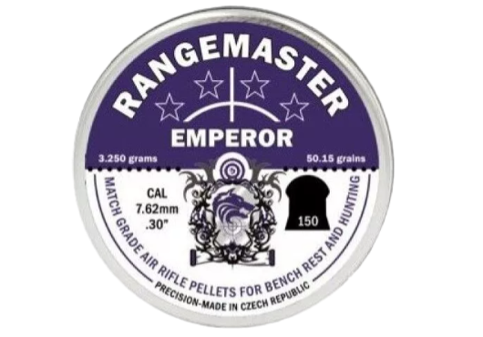 The Emperor .30 pellet is the heavyweight champion of the Emperor range. At 50 gr (≈3.24 g), it’s designed to extract every joule from high-power .30-calibre air rifles. With its robust round-nose, truncated profile and precision engineering by JSB, it ensures maximum energy retention and outstanding down-range ballistic control—ideal for big-game hunting and long-range fieldwork.