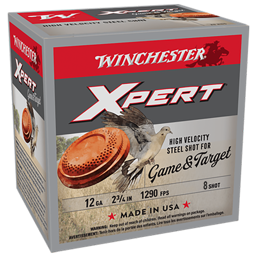 Whether crushing clay targets or shooting down fast flying quail, Winchester XPERT Game & Target shotshells are built for superior on-target performance. The high-velocity, steel shot payload delivers optimum energy and pattern consistency
