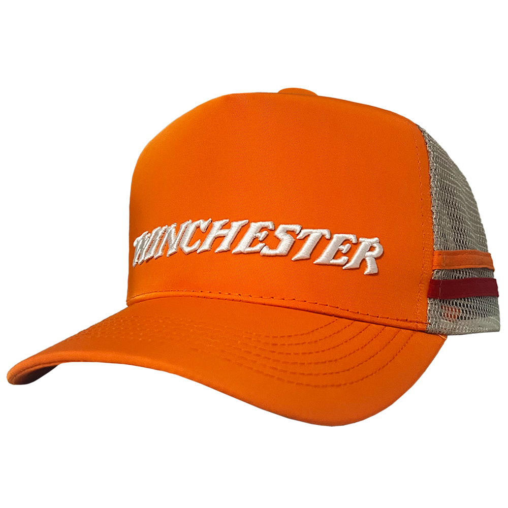 A true nod to heritage, these Winchester Trucker Caps fuse old-school flair with modern comfort — built for those who wear the Winchester name with pride. Featuring the iconic red and orange stripe design with the legendary galloping horse and rider, this range delivers unmistakable 80s Americana energy, reimagined for today’s shooter.