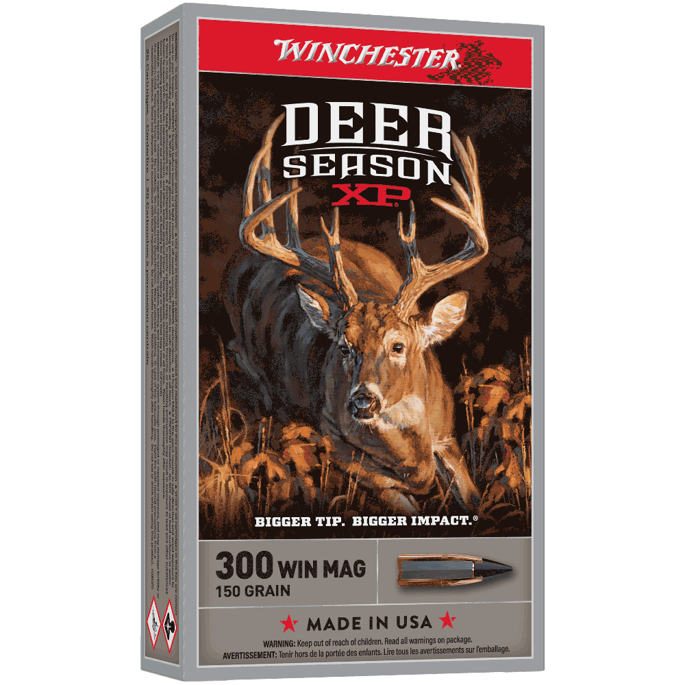 Deer Season XP combines decades of Winchester experience into the perfect choice for deer hunting ammunition. Accuracy, combined with massive bullet impact performance means that Deer Season XP is a great choice for all deer hunters. Suitable for use on Whitetail, Mule and Blacktail Deer.